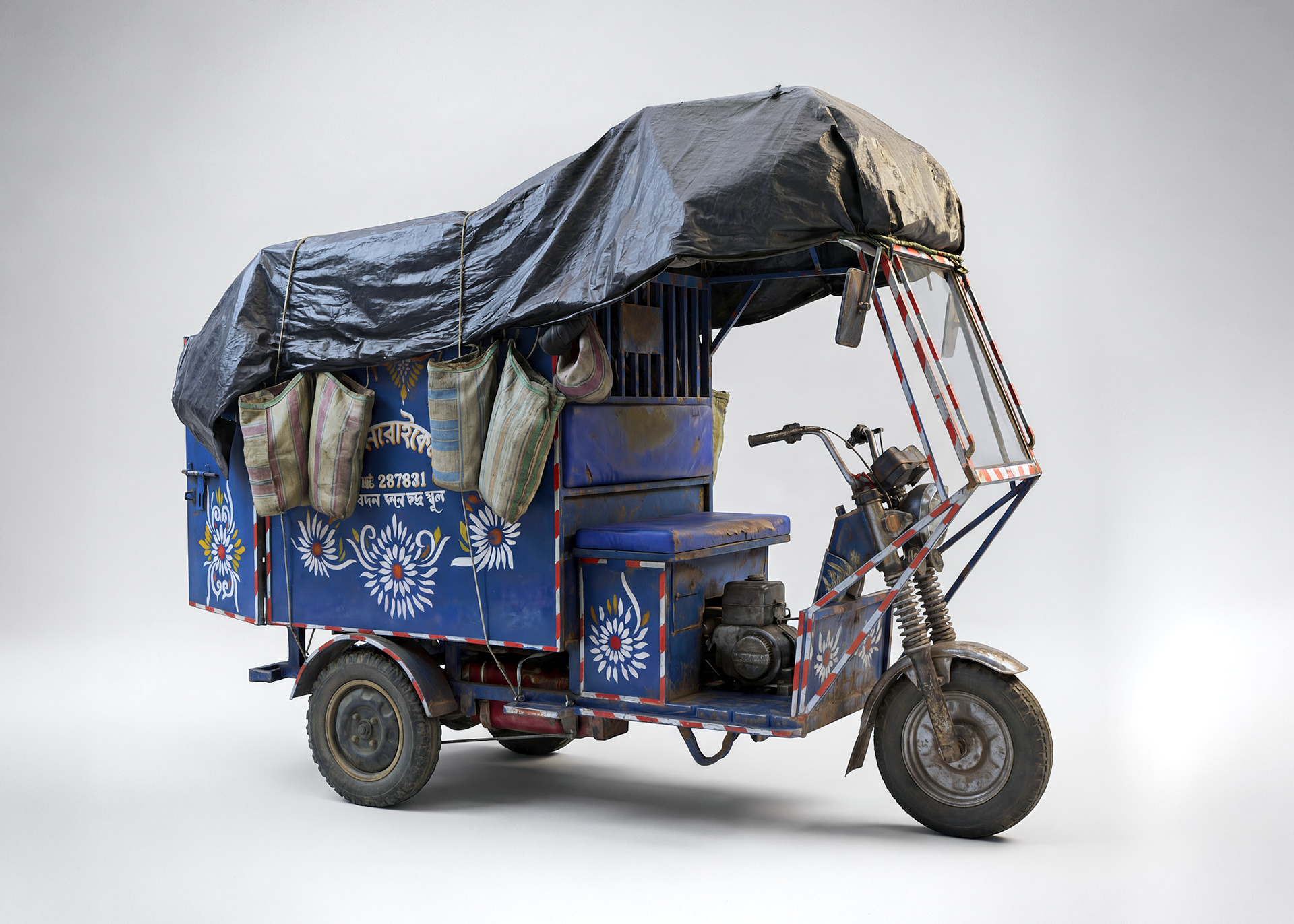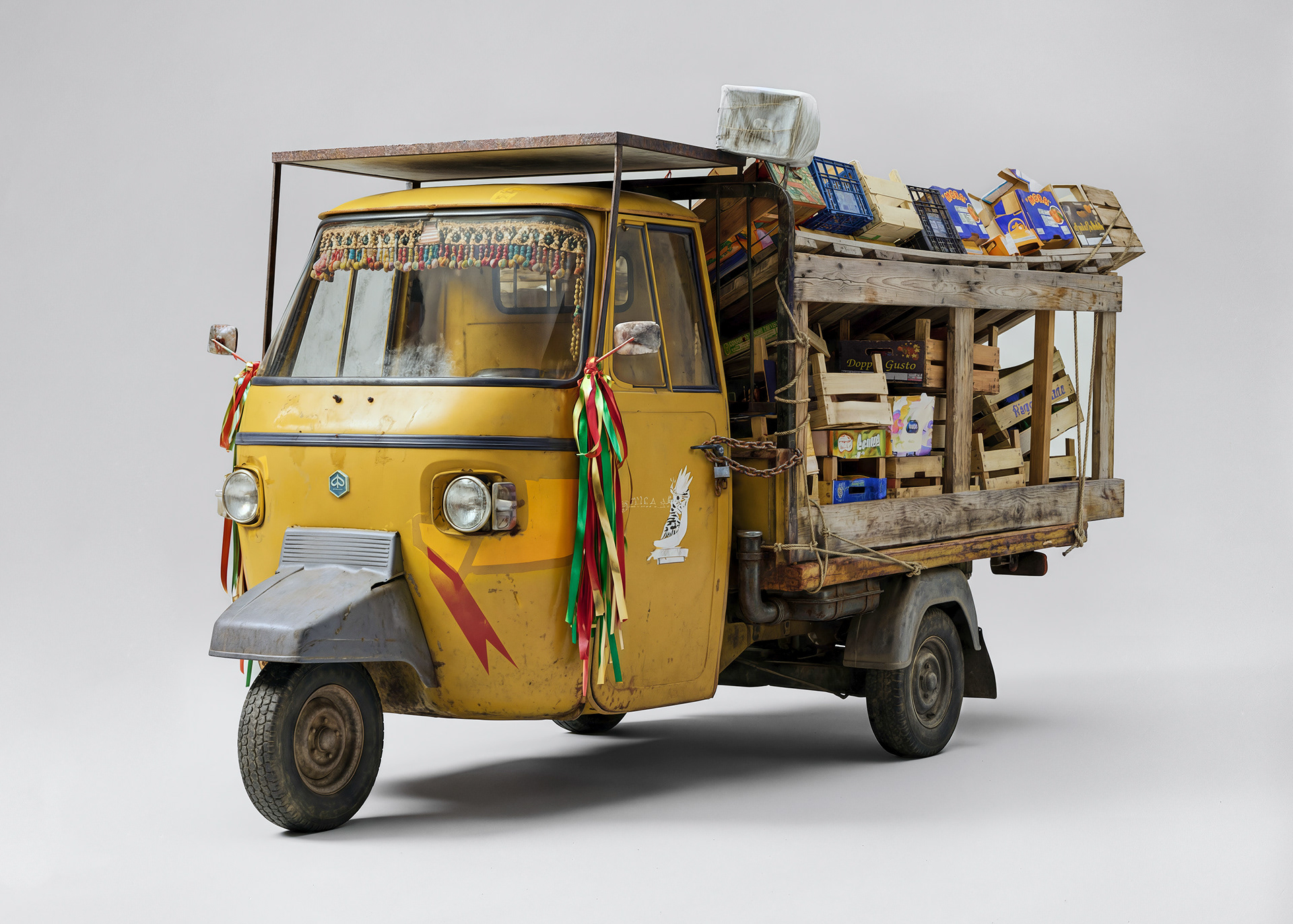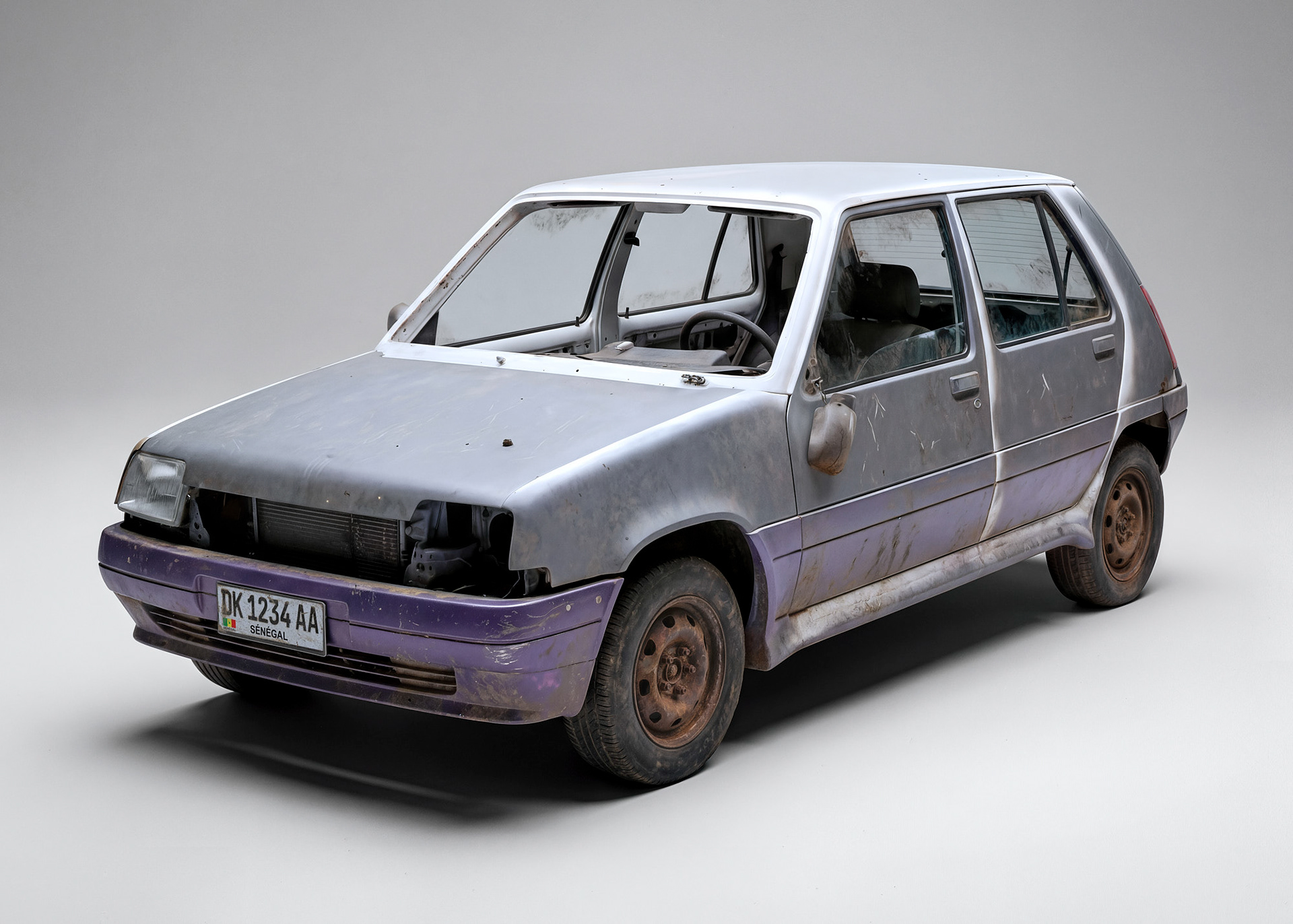 Il y a quelques années, j'ai eu l'occasion de me rendre à Dakar puis à Valparaiso dans le cadre de résidences artistiques. J'ai arpenté les rues des quartiers les plus modestes de ces grandes cités dans le but de collecter de la matière pour les plasticiens avec lesquels je travaillais sur place. Au milieu des mille choses remarquables que j'ai pu observer, il y avait les moyens de locomotion, comme des baromètres du niveau de vie de ces lieux, porteurs d'une fonction mais aussi d'histoires, de traces, de signes et de symboles. J'ai donc entamé, durant ces voyages, une petite collecte de photographies d'engins remarquables, en parallèle des projets menés sur place. J'ai récemment voulu mettre à l'épreuve les nouveaux outils basés sur l'IA proposés aux photographes et c'est dans ce contexte que j'ai exhumé mes vieux dossiers à la recherche de ces images d'engins oubliés. J'ai alors débuté un travail rigoureux d'upscaling de mes clichés. Marqué par la campagne Volkswagen de 2008 de DDB Paris "Be Combi", j'ai souhaité transposer ces objets en studio afin qu'ils puissent porter en eux-mêmes et hors de tout contexte ce qu'ils avaient à raconter. J'ai vite manqué de matière. J'ai donc, d'une manière singulière, poursuivi mes voyages afin d'enrichir la collection dont vous trouverez ici un aperçu. Toutes les images de cette série représentent avec une très grande fidélité des véhicules existants ou ayant existé. Toutes ces images sont à la base issues de photographies. Si cela vous amuse, allez donc faire un tour sur Google Street View et cherchez, vous les trouverez...