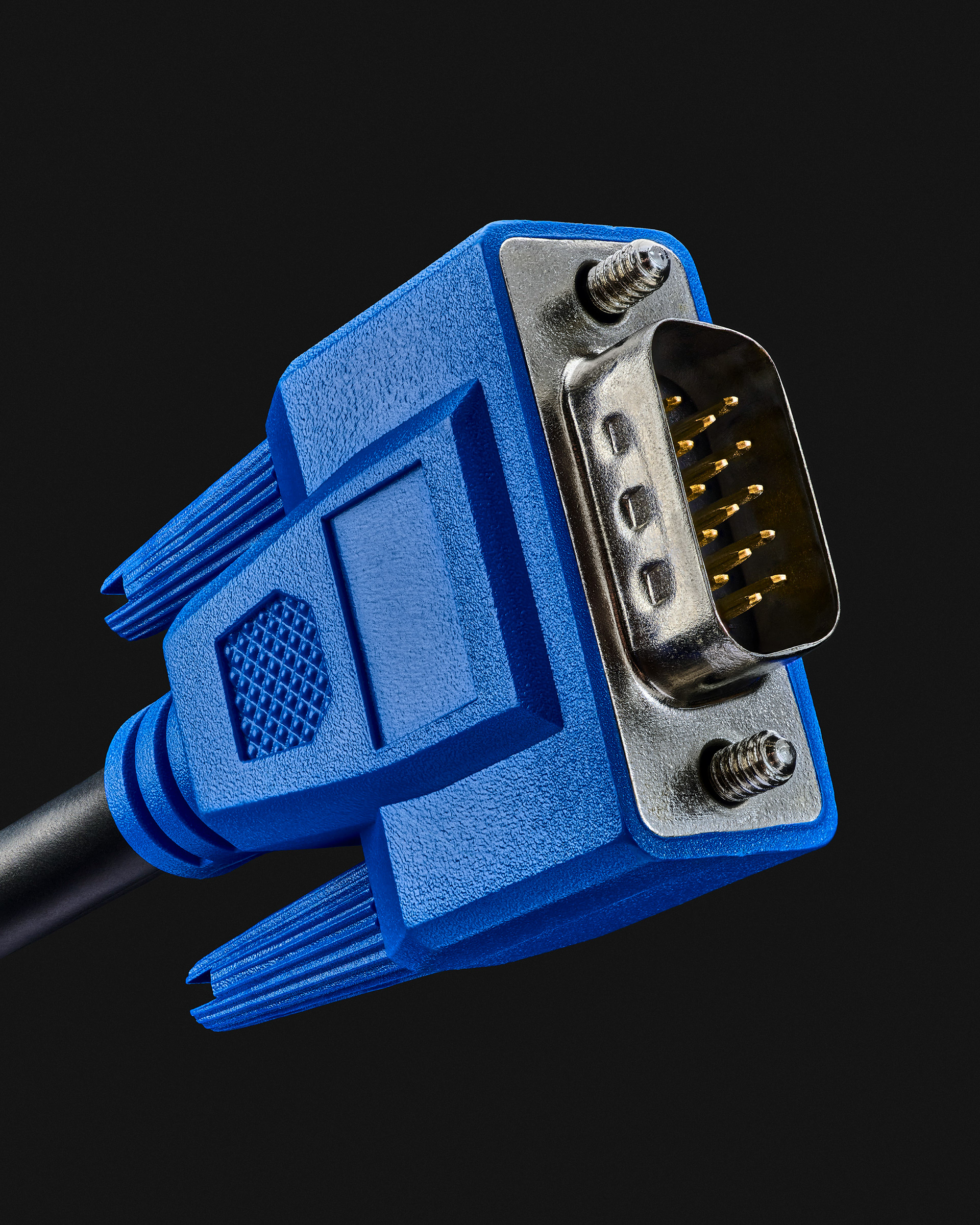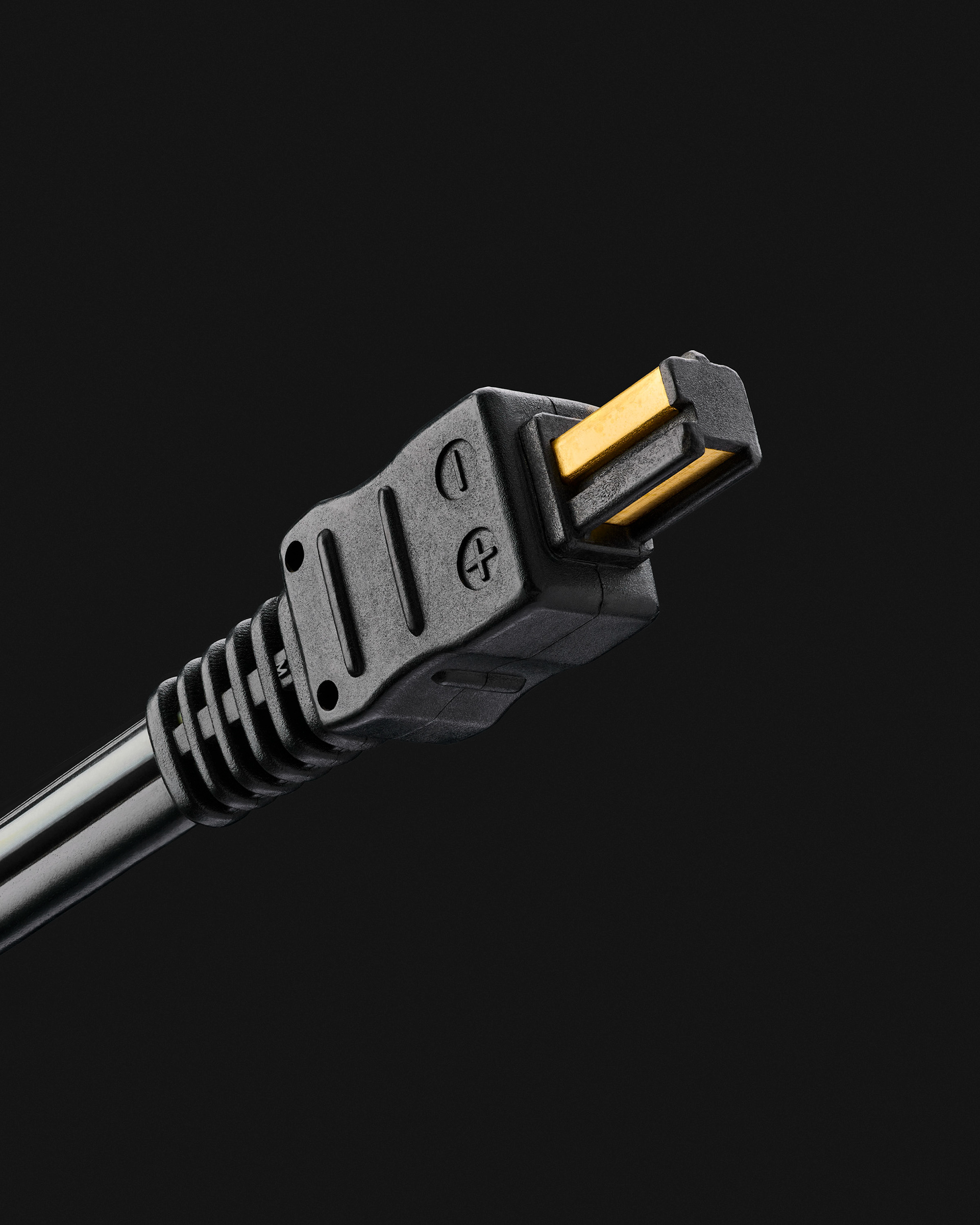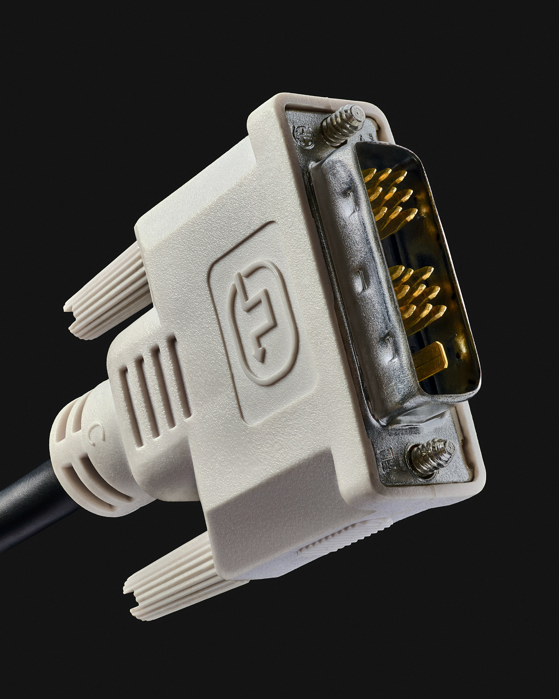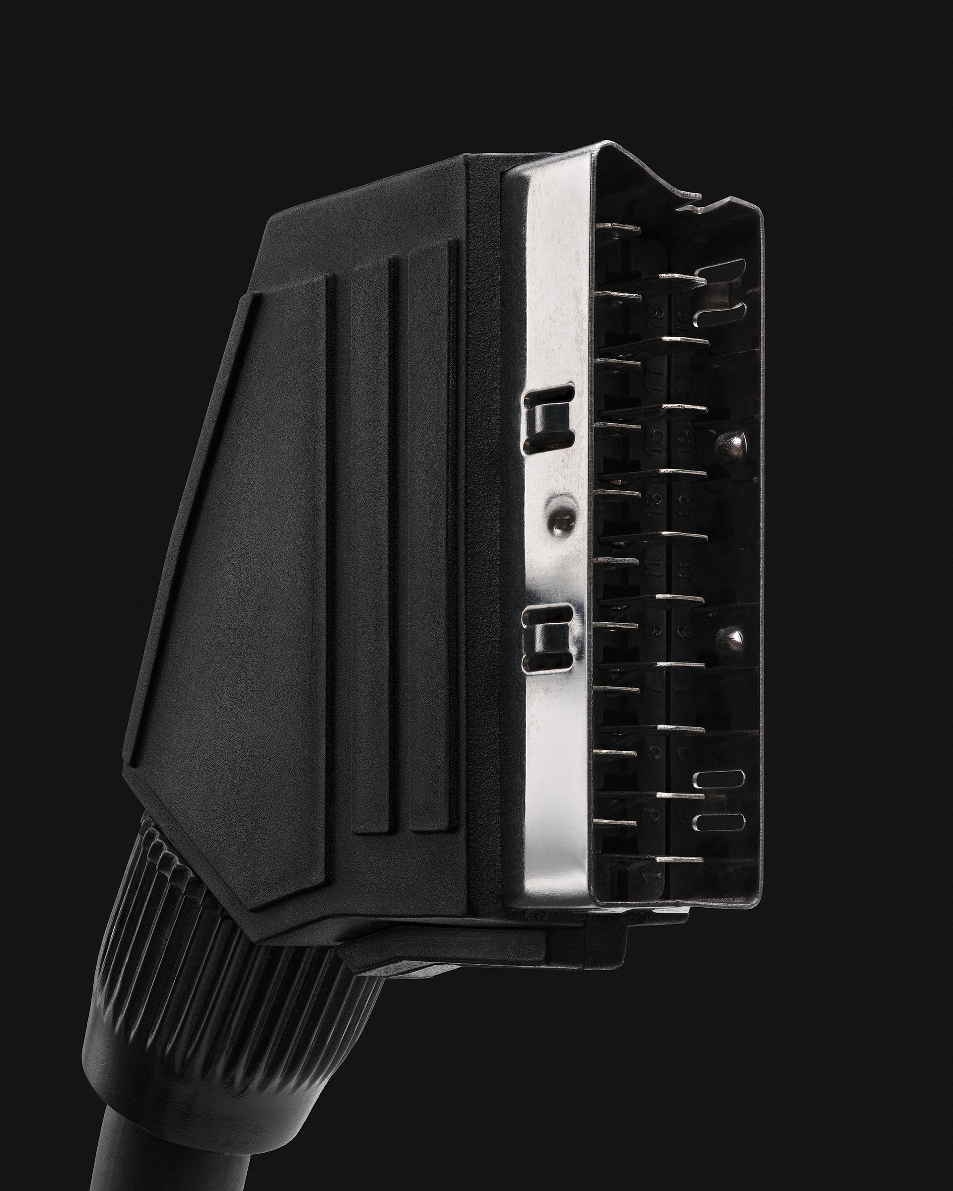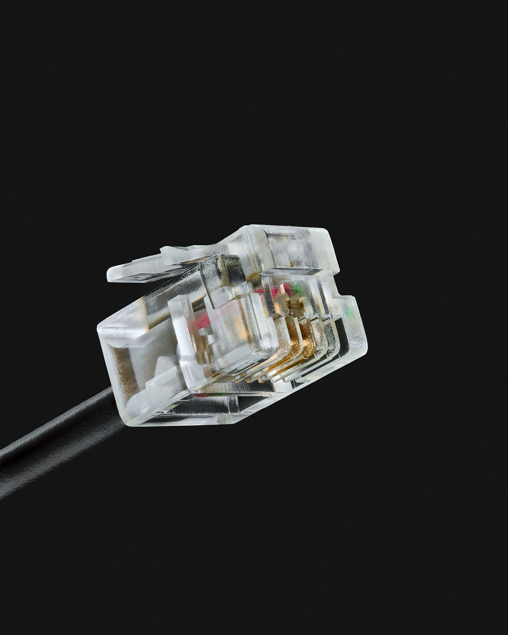 La prise Péritel, objet technique perfectible mais attachant par nostalgie. Voici le point de départ de cette série. La volonté de rendre hommage à l’objet, à la fonction et à l’usage d’un artefact d'un autre temps, qui m’a pourtant vu naître. Et puis par extension, il y a eu la prise téléphonique en T, le cordon RJ11, le VGA, le chargeur d'iPhone 1, etc. J’ai commencé à collectionner les connectiques obsolètes et à les photographier, avec le désir inavoué d'en dresser une sorte de typologie . Rapidement, j'ai constaté que l'observation macroscopique de cette série d'objets si banals ouvrait un champ critique aussi puissant qu'insoupçonné. Le noir profond et luisant des premiers objets, observés avec autant de proximité, laissait apparaître, presque suintant, sans fard, le pétrole les constituant. Et puis, le travail sériel à révélé des systématismes. Usage du pétrole donc, de métaux dont l'or, de câbles transmettant énergie et/ou information, etc. Ces simples objets, aujourd'hui méprisés, remisés dans chaque foyer au fond d'un tiroir parce qu'embarrassants, sont le parfait reflet des enjeux fondamentaux de notre modèle de société actuel et de notre déni face à son fonctionnement. Ils interrogent notre rapport au monde matériel et technologique et explorent les paradoxes d'un monde où les objets sont conçus pour connecter, mais finissent par isoler.